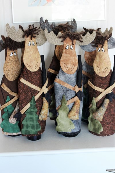De här flaskgömmorna vill tex. jägare ha. De är också en rolig present till alla som "har allt". Mönstret är designat av Vera Fjellås och heter "Skogens Konge", det följer med mönster på glasunderlägg också.